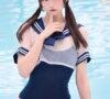 瑚桃きらり「たぬき顔×黒髪ツイン×スク水 = 至高」!透明感あふれるスク水ショットにファン悶絶!