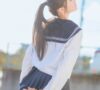 「この丈は校則違反ですか?」 江口いちご、夕暮れのセーラー服姿で魅せる“究極のチラリ”バックショット!